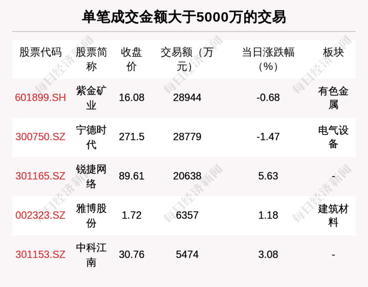 每经AI快讯,2025年2月24日,沪深两市一共发生119笔大宗交易,共成交15.59亿元,涉及71家上市公司。